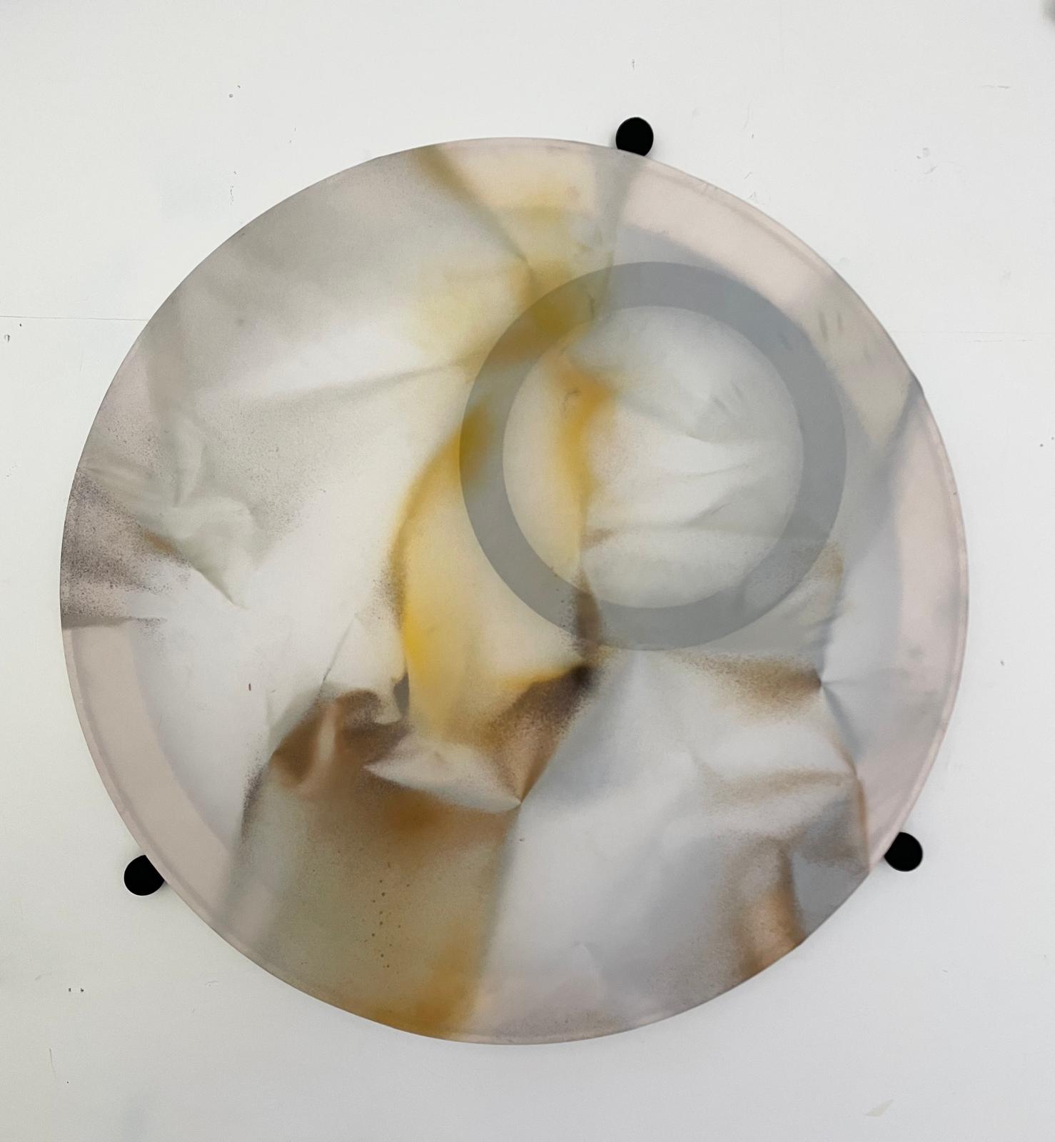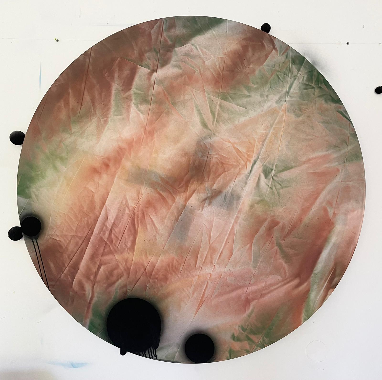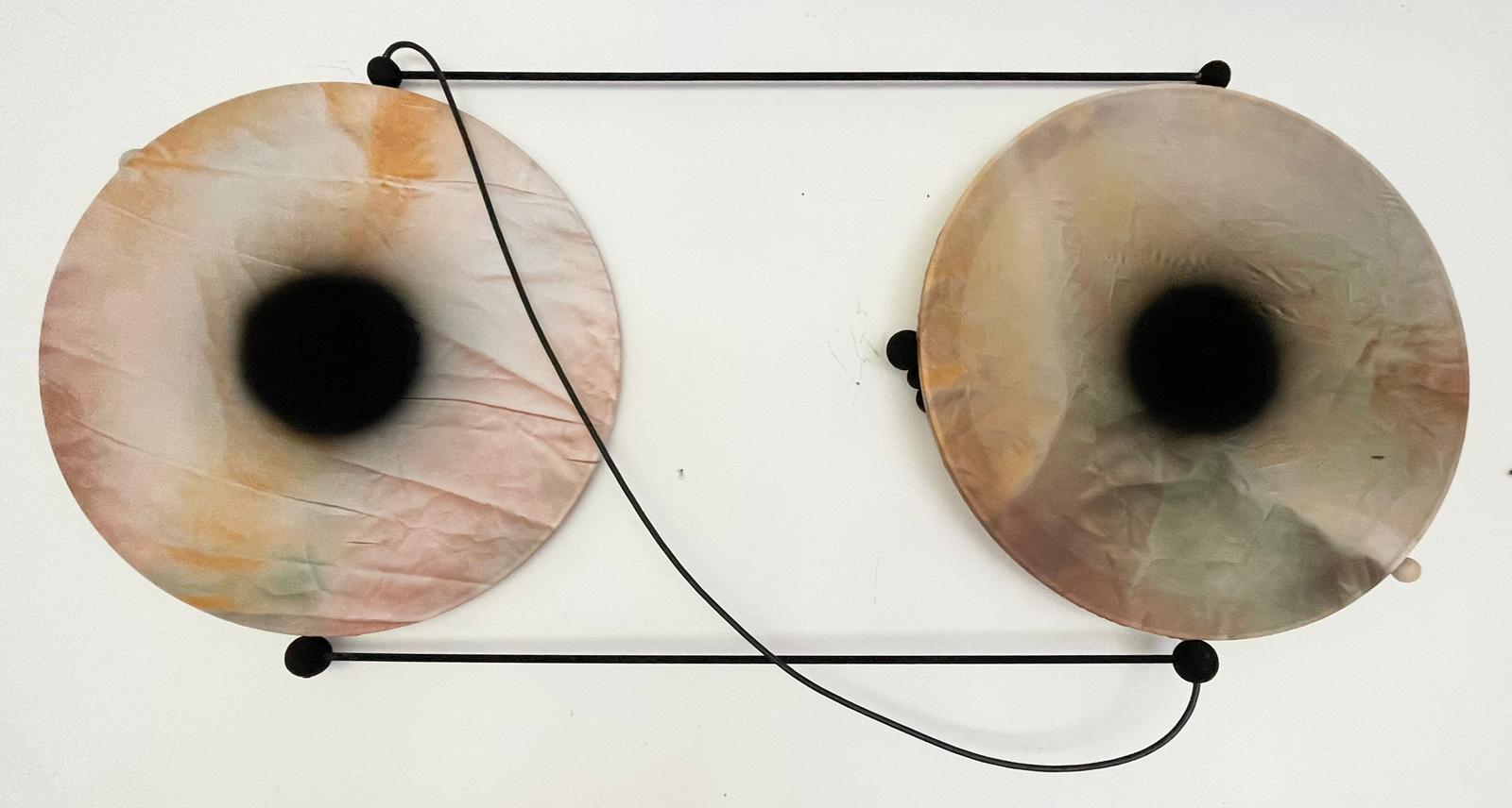 Przewodnim wątkiem jest rytm, a powstałe obrazy nazywam perkusyjnymi. Wybieram okrągłe krosna, naciągam je jak bębny. Pracując myślę o historiach, tak jak inni słuchają przy pracy muzyki. Oczywiści słucham też muzyki: perkusyjnej. Choć dedykuje to malarstwo pozabijanym na polecenie Bolesława Chrobrego Bębniarzom, to malując często oddalam się od prastarych bagien i puszczy, skąd dochodziły pogańskie rytmy mącące w duszach świeżo nawróconych chrześcijan. Na moment, czasem nie dłuższy niż uderzenie w bęben, zdaję sobie sprawę że to już nie jest o bezpowrotnie utraconej muzyce sprzed tysiąca lat, tylko o bliskich nam kanonadach.